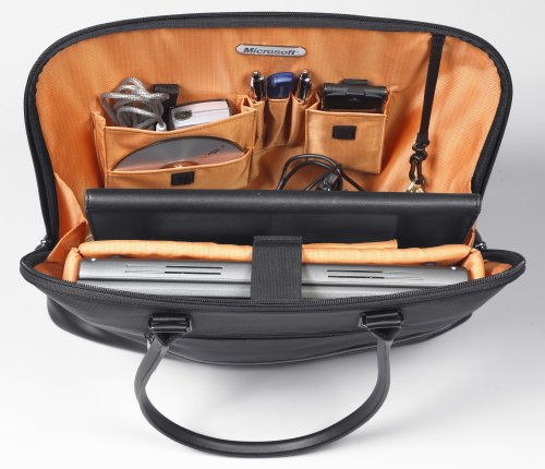I've only been using my new tote for a few days, but it is light years ahead of the one I had. Aside from being a Microsoft product (which gives me smart points from the get go), I love how streamlined, sleek and professional it looks. So many other women's totes tend to be constructed so that they are floppy and collapse when you set it down, but this bag has enough structure keeps it's shape. Its hard to see from the picture, but one of the pockets on the inside is large enough to hold my power cord, a feature that is sometimes hard to find as I hate things just rattling around in the bottom of my bag. This really is a great bag and I look forward to toting my laptop around in it for a long time.